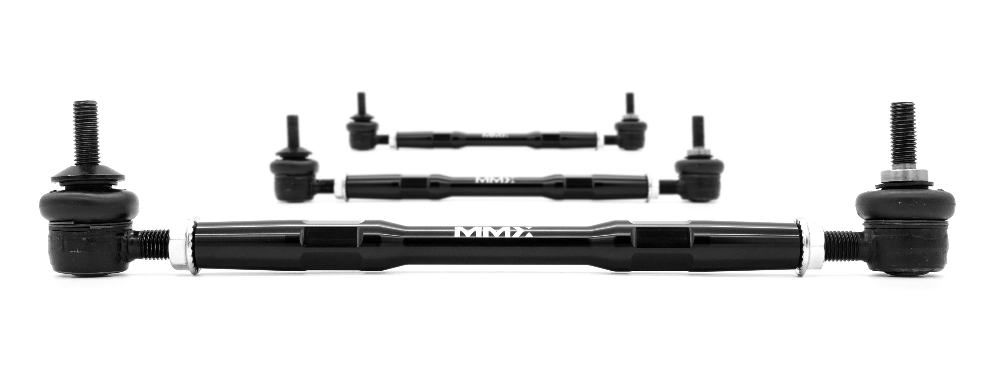 When your ride height is altered, your vehicle's anti-roll bar ends are pulled up out of their optimum location. With around 40mm of adjustable length, plus left and right threaded ends for easy length adjustment, the MMX adjustable drop links allow you to adjust back to zero preload on your anti-roll bar - operating exactly as it should again.